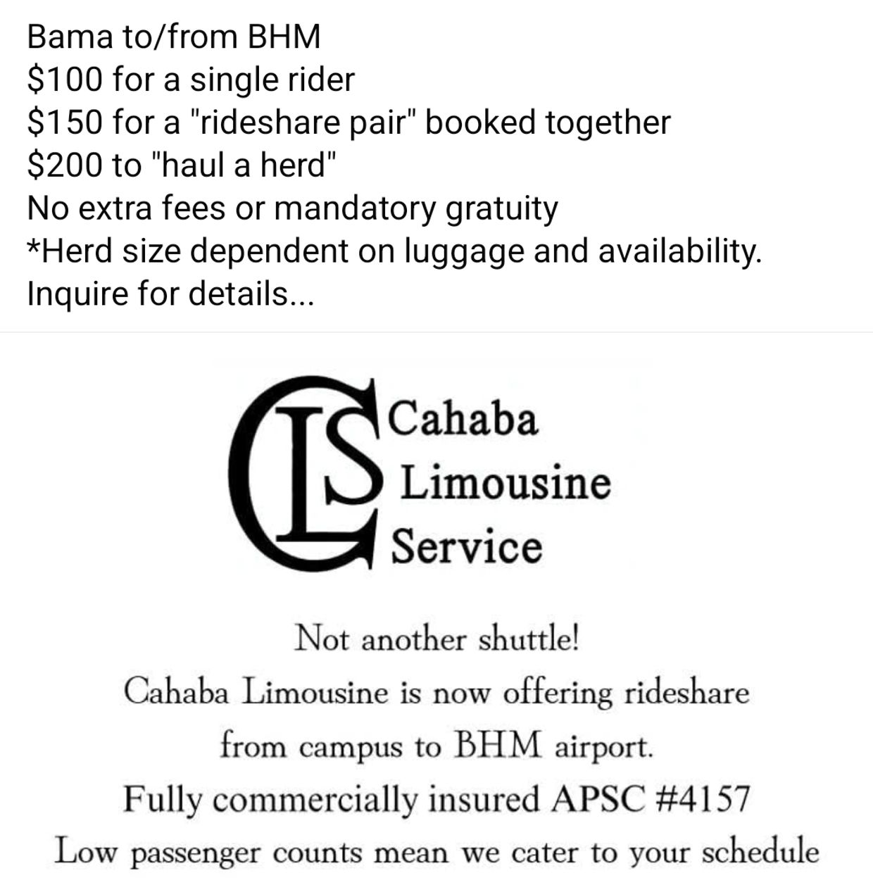 At Cahaba Limousine Service LLC we are University of Alabama parents ourselves and pride ourselves in being fully compliant with all city, state, and federal regulations regarding background checks, safety inspections, and commercial insurance. We take this a step farther in doing all the driving ourselves and not hiring unknown people. Mr. Mike comes from an automotive background starting in 1997 and takes personal pride in the working condition of the vehicles. We are overprotective parents, and we treat the student riders how we would want our own daughters treated.
